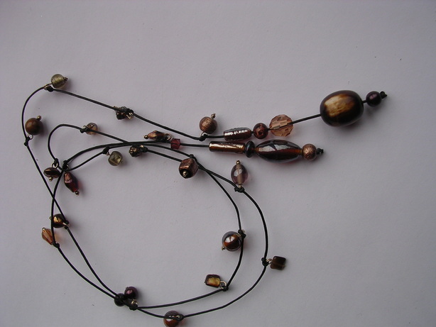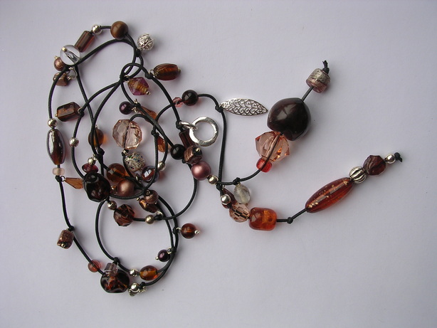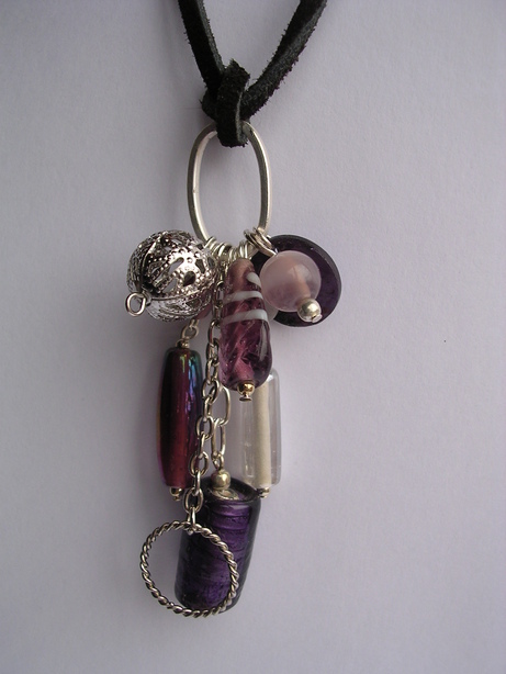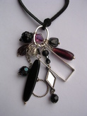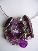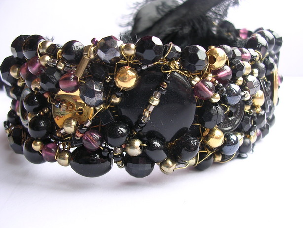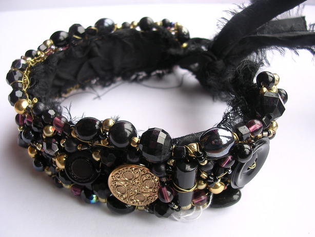 NecklacesClick on the image of an item for a larger picture. ChokersBeautifully crafted chokers which are an eclectic mix of buttons, beads and pieces of vintage jewellery pulled together with a contemporary twist. They are real statement pieces. If you want a piece of jewellery to get you noticed this is the design for you. The chokers are backed onto a fabric, usually raw silk or similar. The contrast between the frayed edge of the fabric and the buttons and beads is stunning. I make 2 widths, approximately 2cm and 4cm. A discount is given when ordered with a matching cuff. Encrusted neckpiecesEncrusted neckpieces are an eclectic mix of vintage and new buttons and beads, intricately stitched together to create a piece of artwork to wear. They are lightweight and very easy to wear. I use 2 different methods to finish them: Beaded wireThe encrusted neckpiece is attached to a special wire which I thread complimentary beads onto. The wonderful thing about these neckpieces is that you do not have a clasp, they hold around your neck beautifully. You can run, jump or hop and they will not fall off! RibbonI can also stitch the encrusted piece onto ribbon. I usually use 2 or 3 different complimenting ribbons, stitched together. LariatsA lariat is simply the most versatile piece of costume jewellery, and every woman should own one. The lariat can be worn like a scarf, a mid length necklace, a shorter choker style necklace or even as a bracelet (advice regarding wearing a lariat). I make 2 lengths, long and medium. The long lariat is approximately 160cm in length. It is quite chunky, especially when wrapped around 2 or 3 times. Great for autumn and winter. The medium lariat is approximately 120cm in length. This is a more delicate piece of jewellery, still very versatile, but not quite as heavy and therefore great for wearing in the spring and summer. Cluster pendantsThe cluster is an eclectic mix of vintage and new beads, chains and findings, all attached to a ring and tied with black suede. The cluster can be worn at any length. For an even more personalized and versatile look, the suede can be easily replaced with a ribbon, fabric or lace of your choice. |